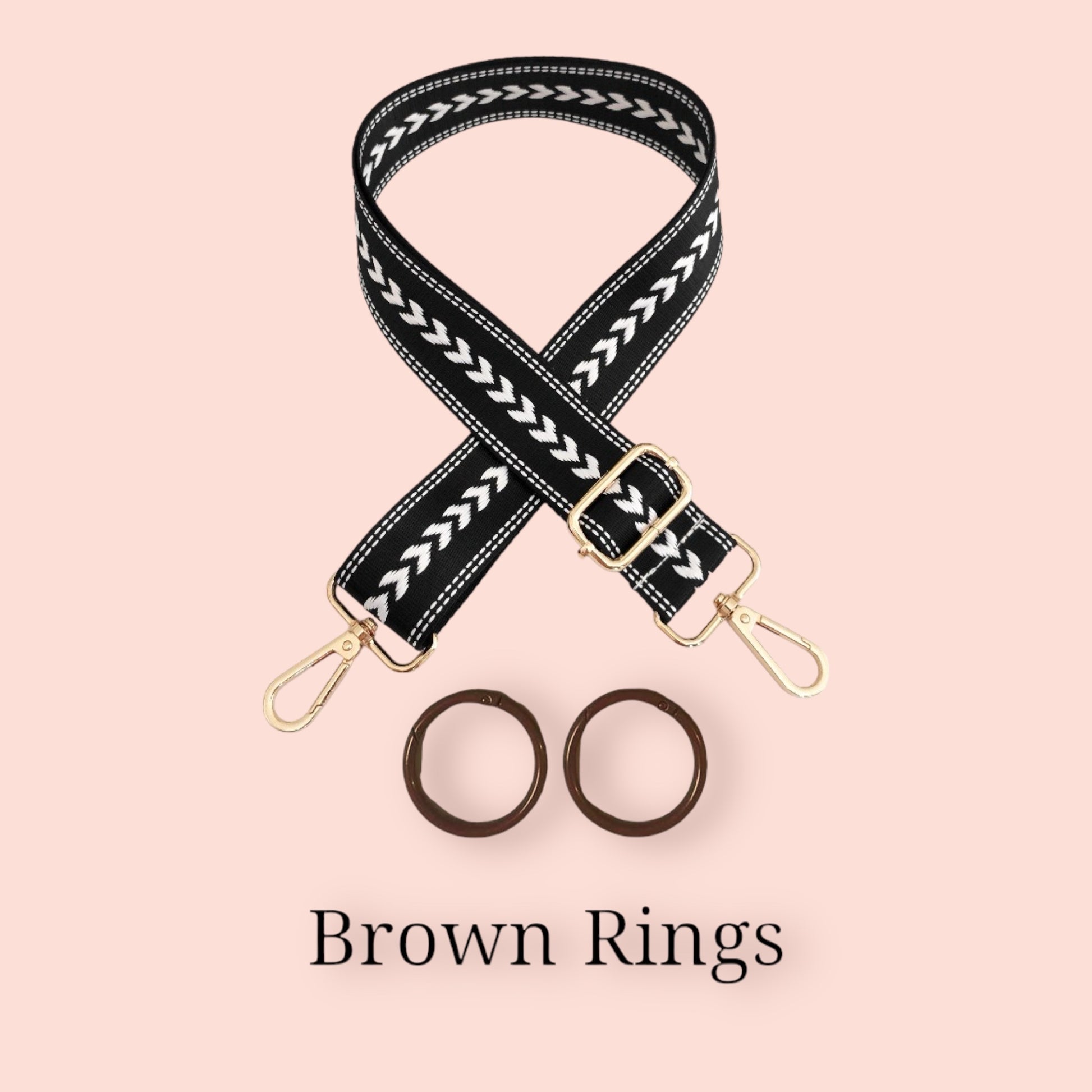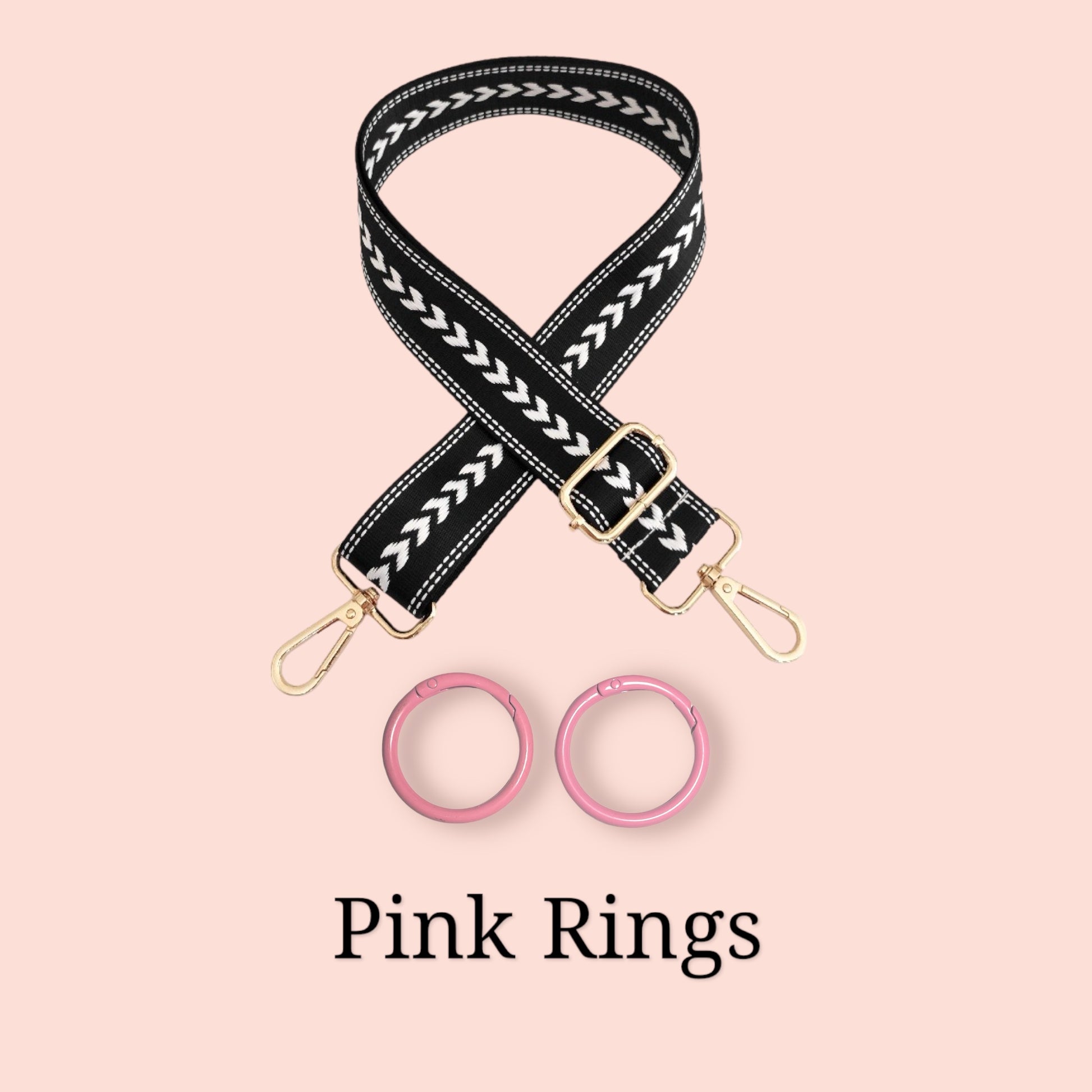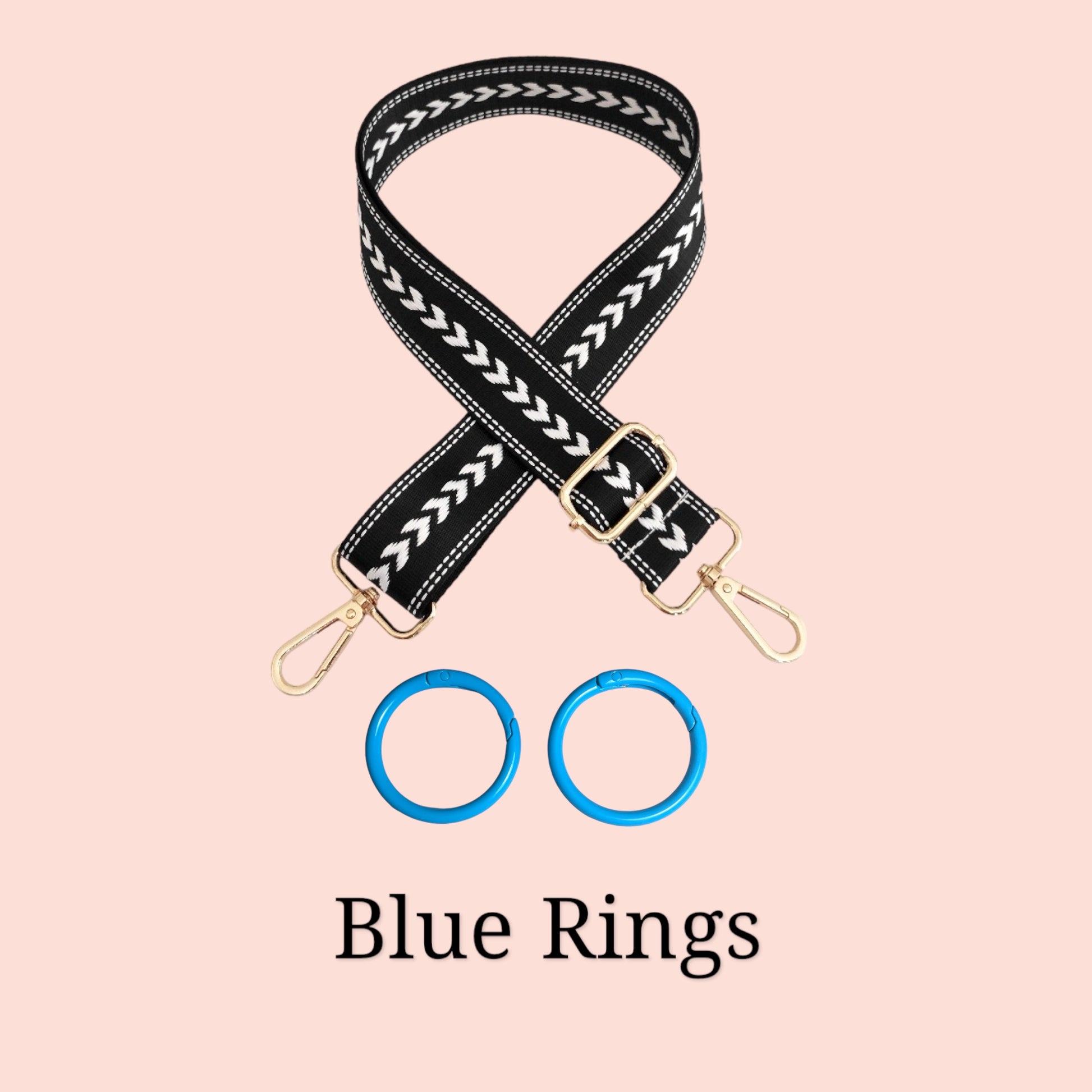 Black Arrown Nylon with white arrow design. Gold hardware. Adjustable length of 80-130 cm. Ring included. (BAG NOT INCLUDED)