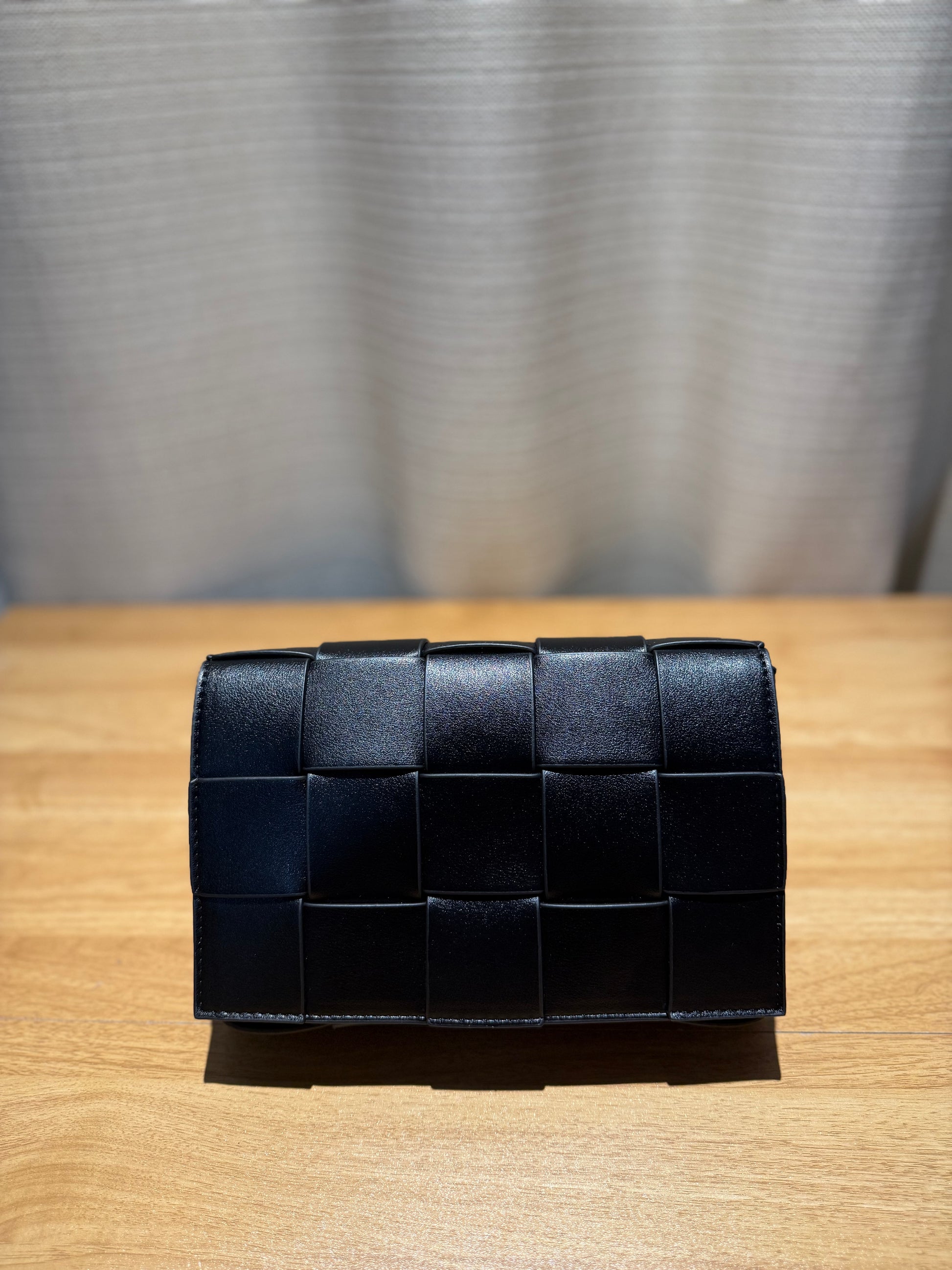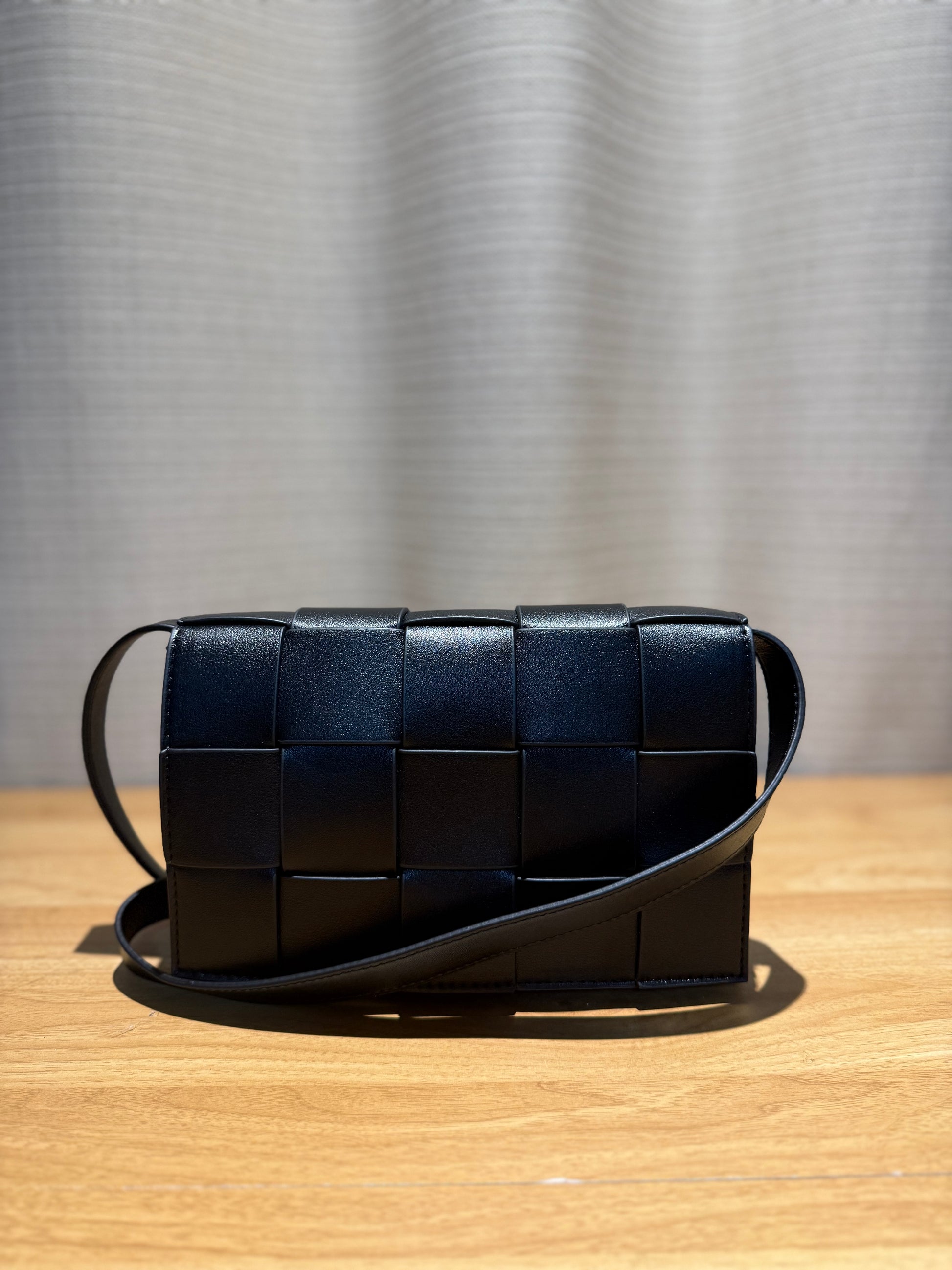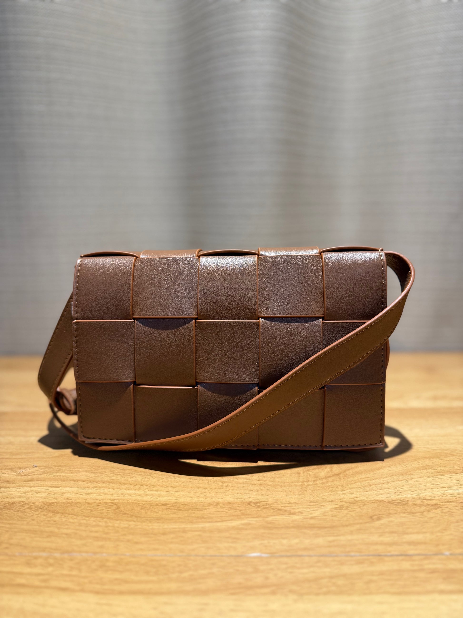 Cassette Sling Bag is made of genuine cowhide leather. It comes with a pouch and an adjustable strap.