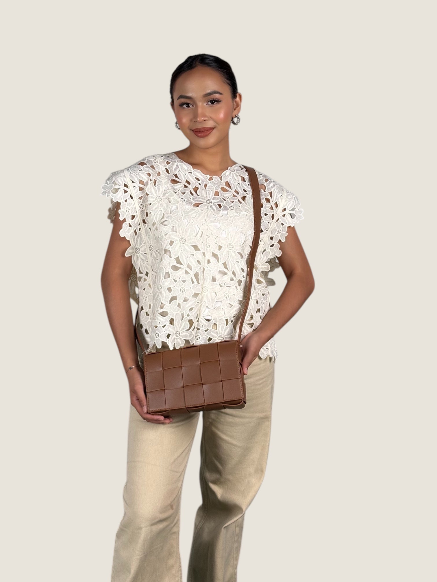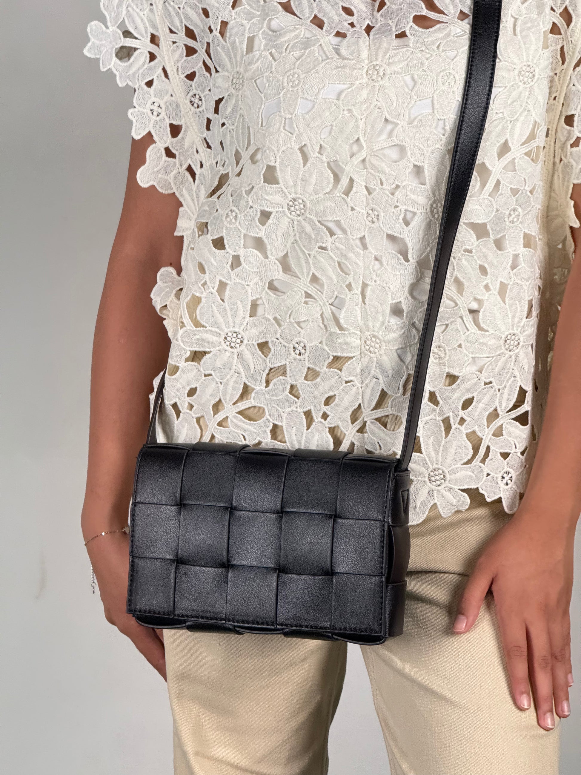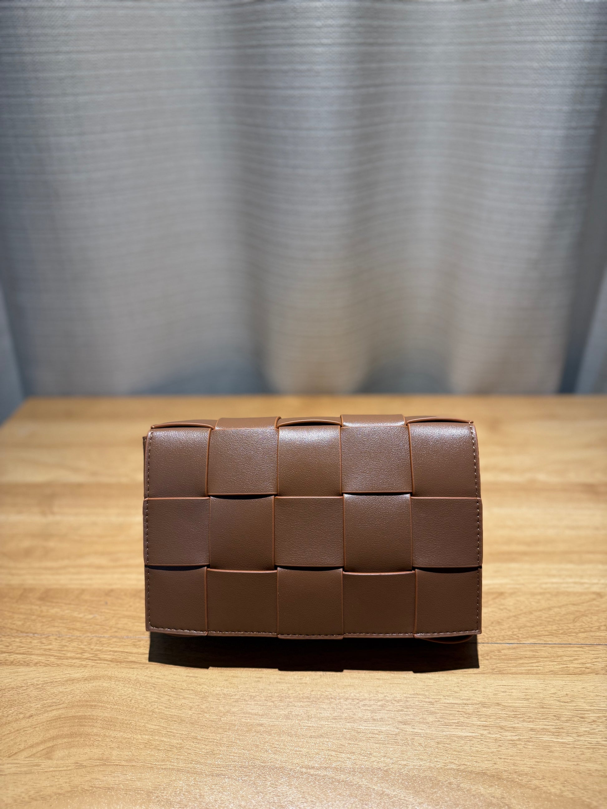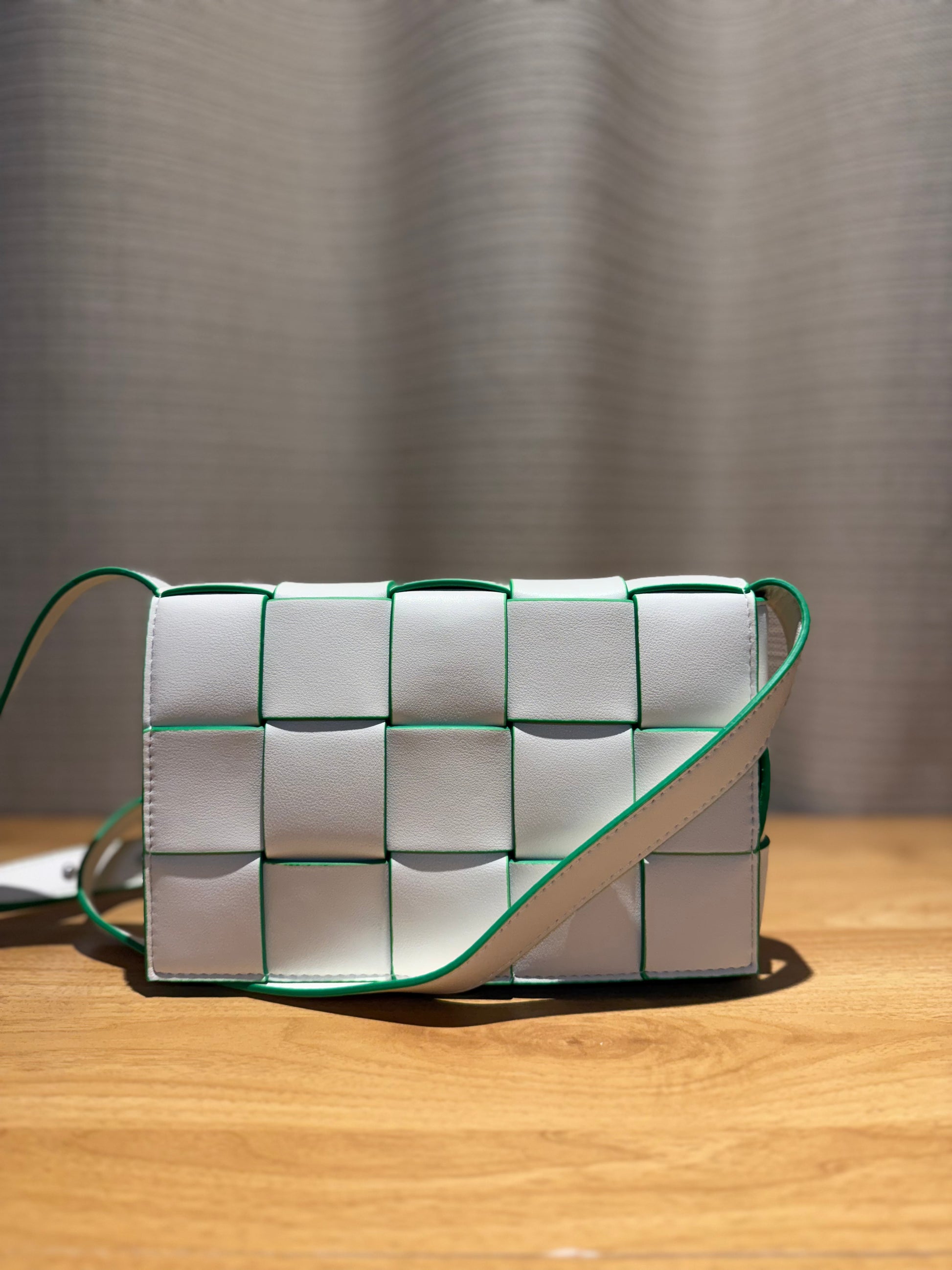 Cassette Sling Bag is made of genuine cowhide leather. It comes with a pouch and an adjustable strap.