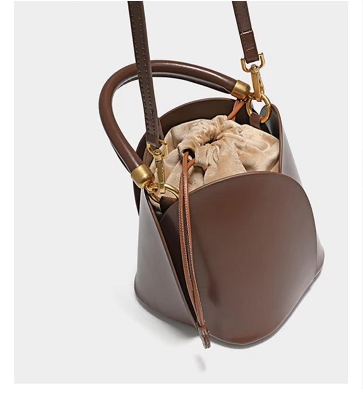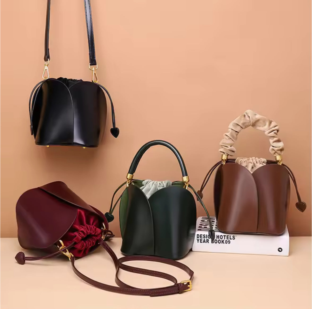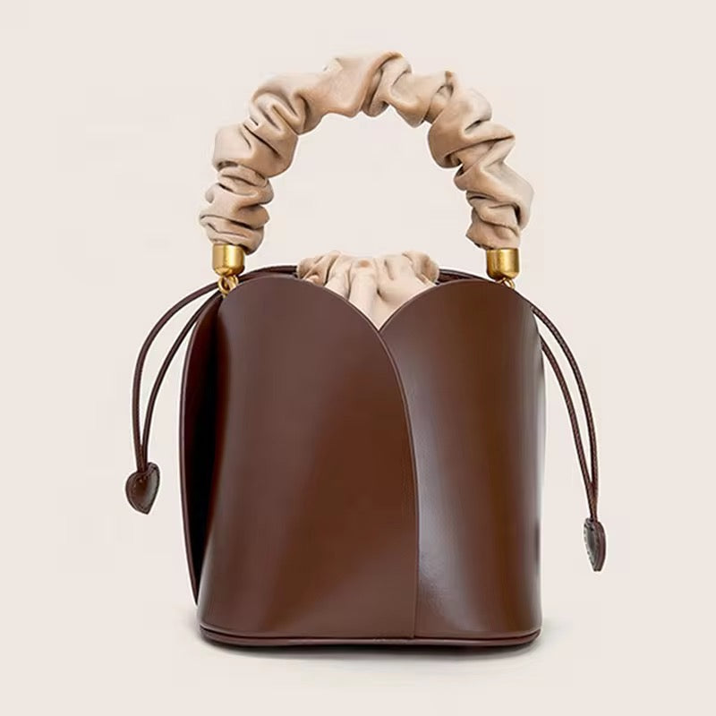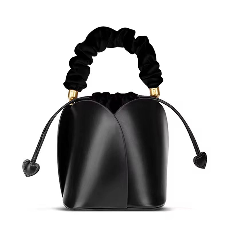 Mini Flower Bag is made of genuine cowhide leather. It comes with a 3- option strap; short velvet handle, short leather handle and long adjustable strap.