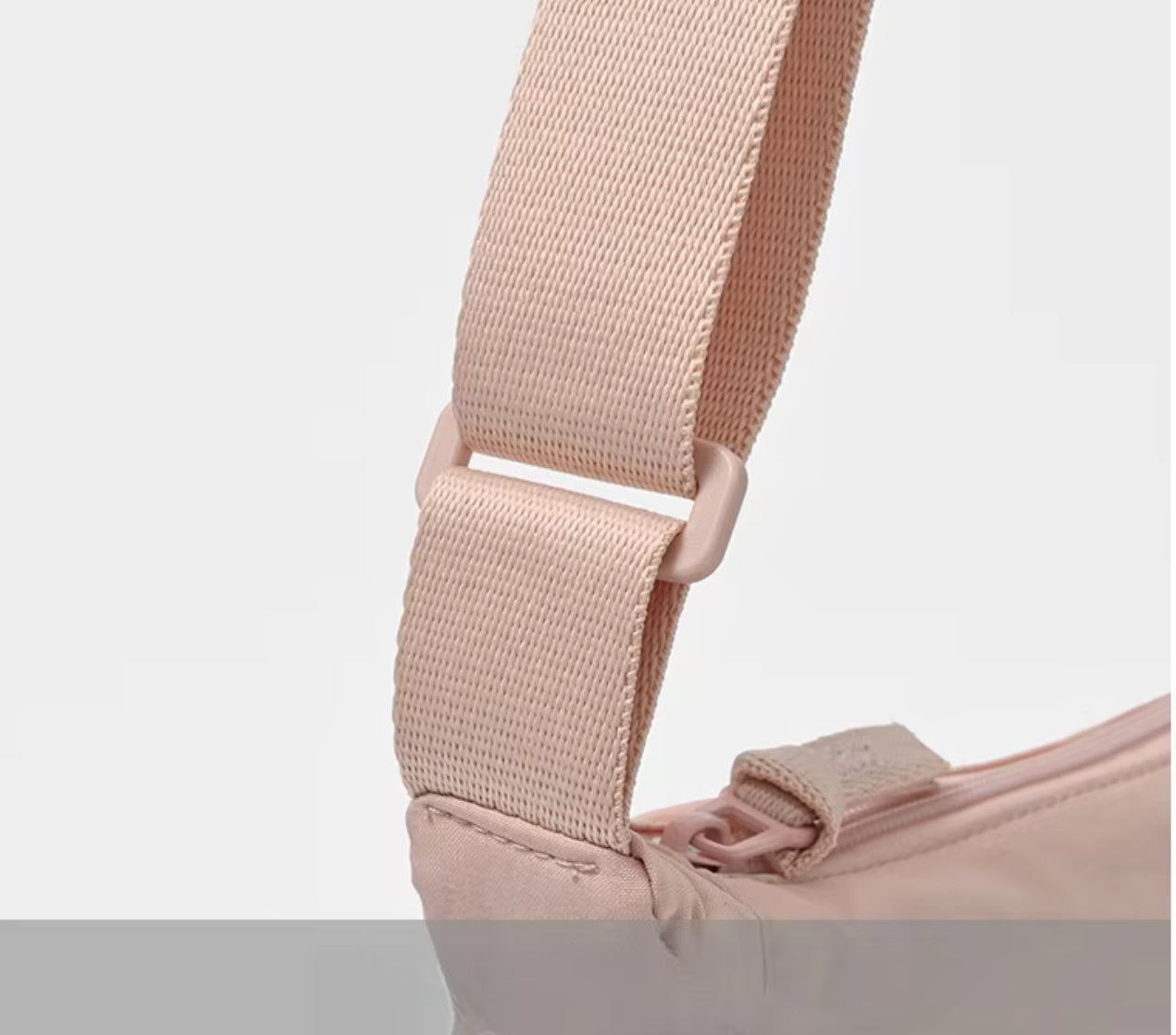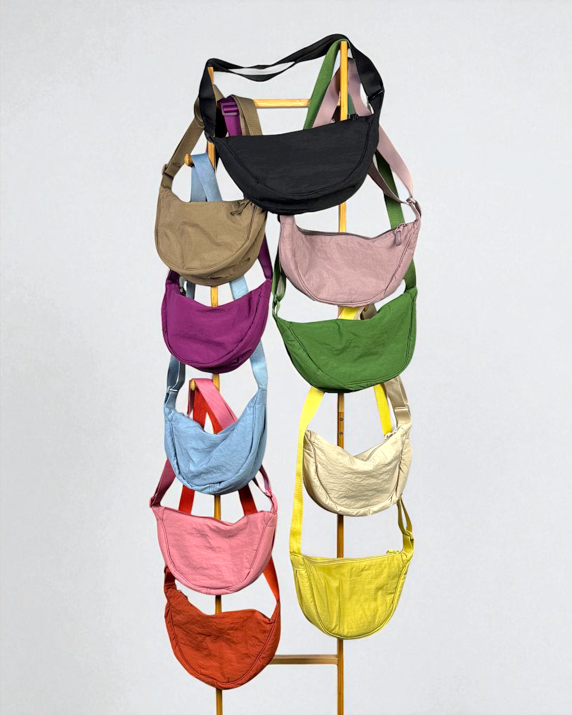 The Moon Bag is made from high-quality, water-resistant nylon fabric. -
