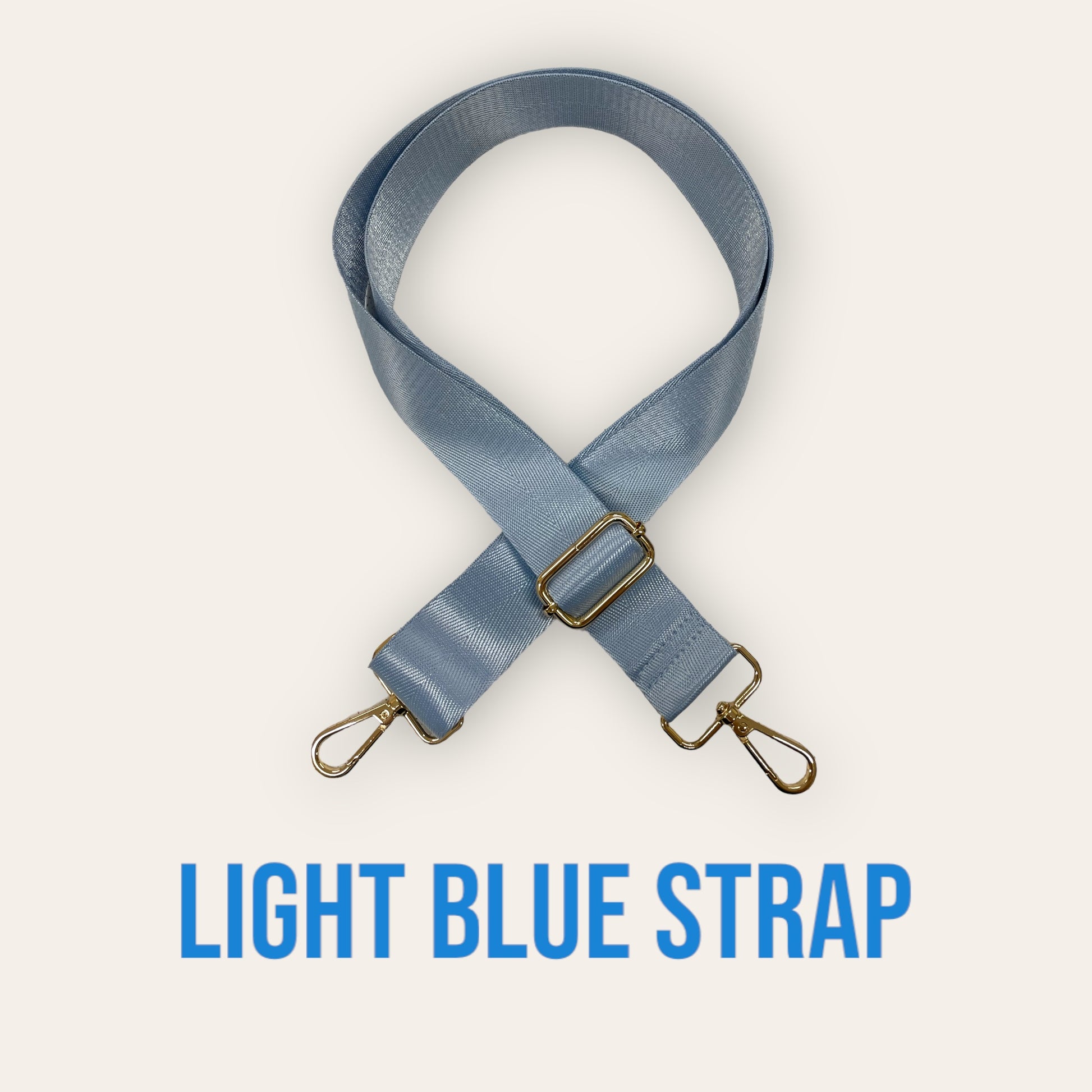 Plain Blue Nylon with gold hardware. Matte finish. Adjustable length of 80-130 cm. Ring included. (BAG NOT INCLUDED)