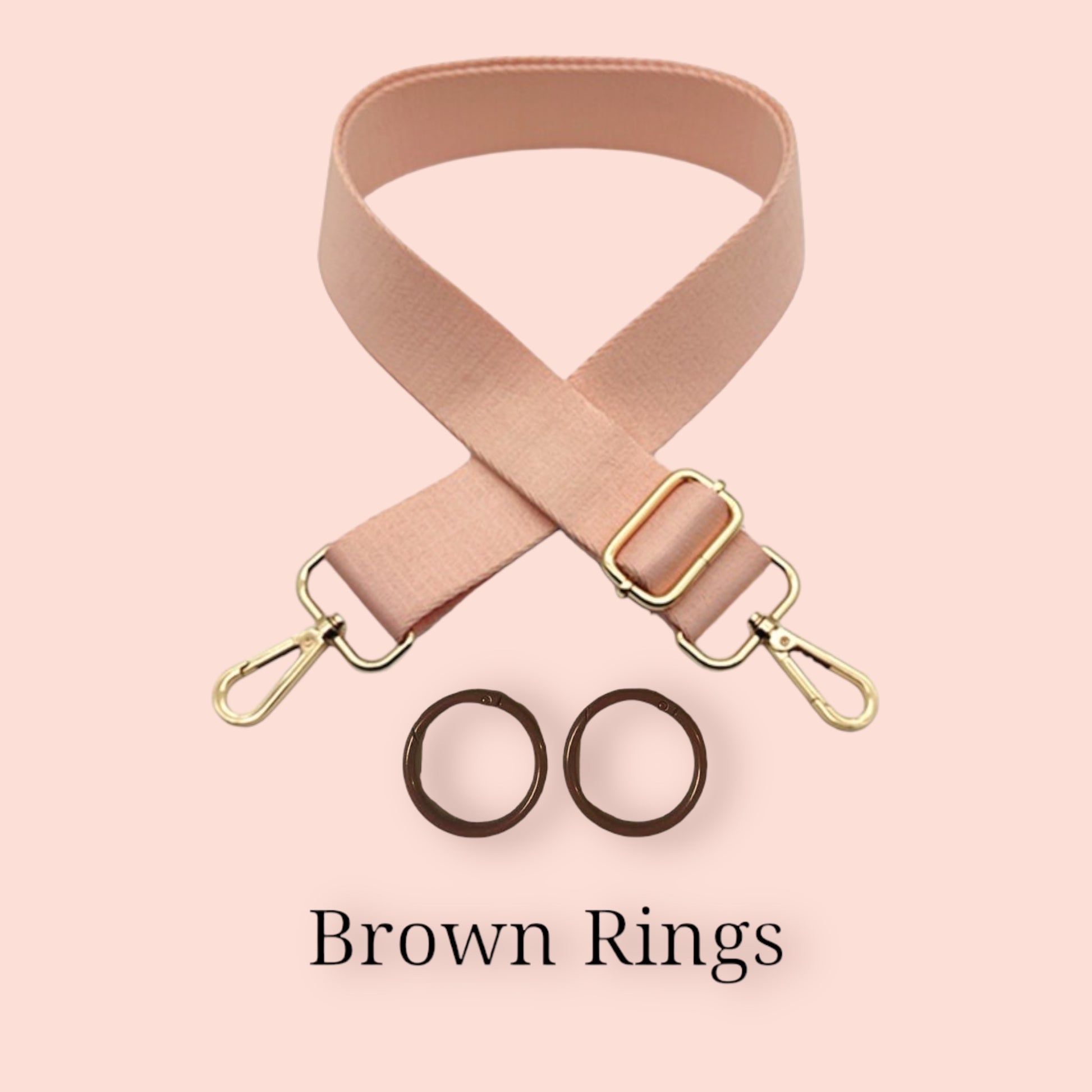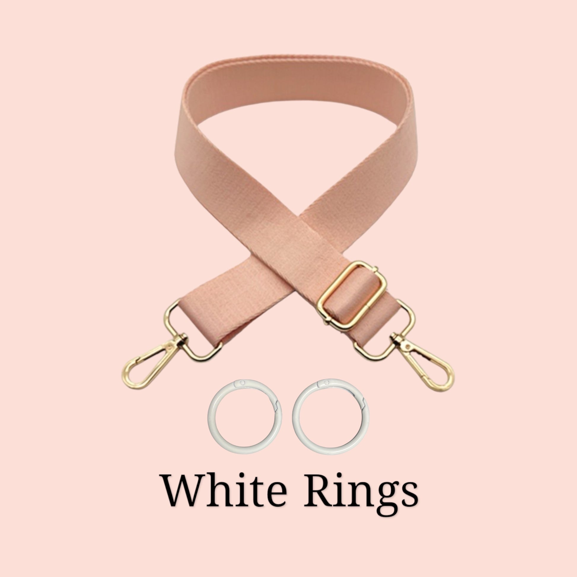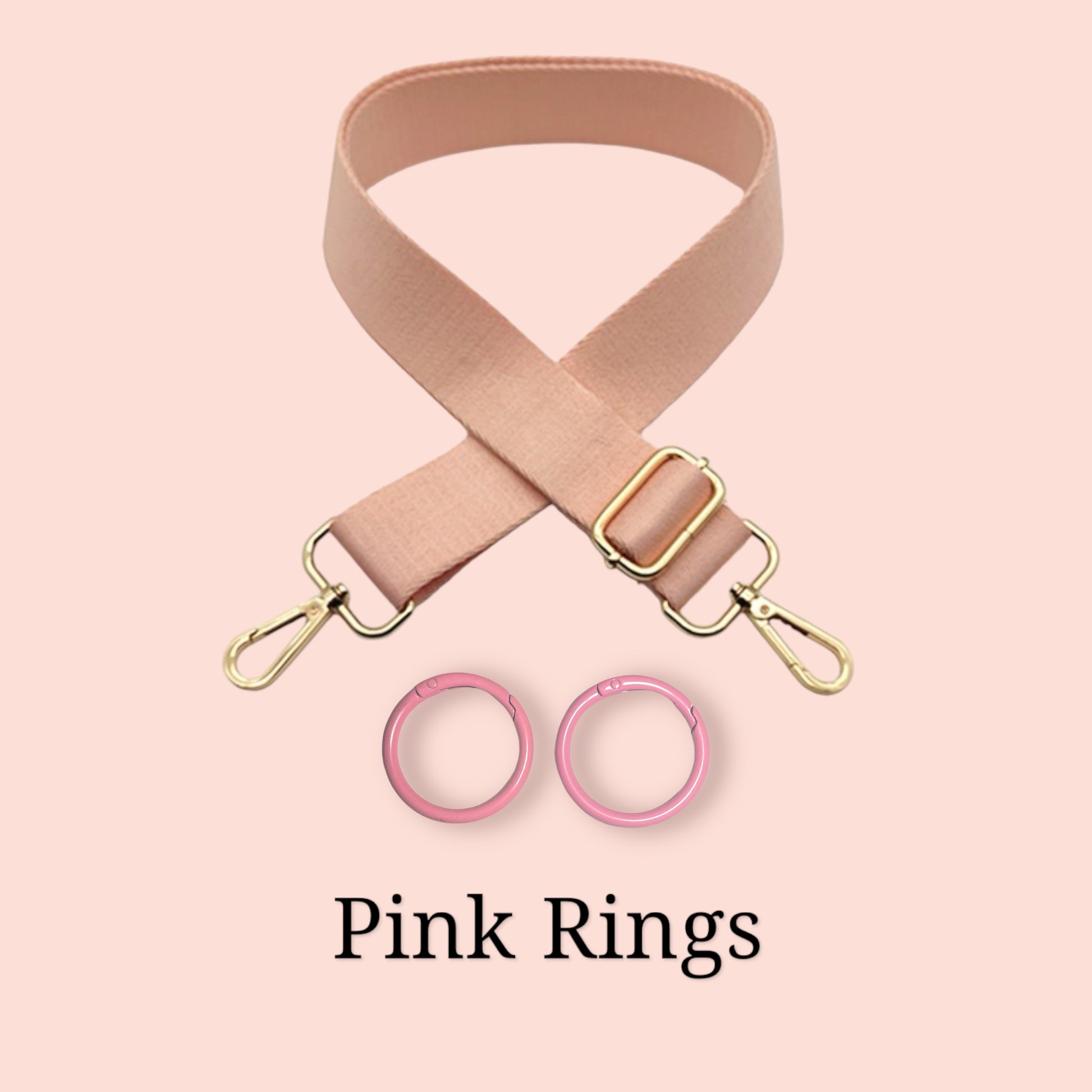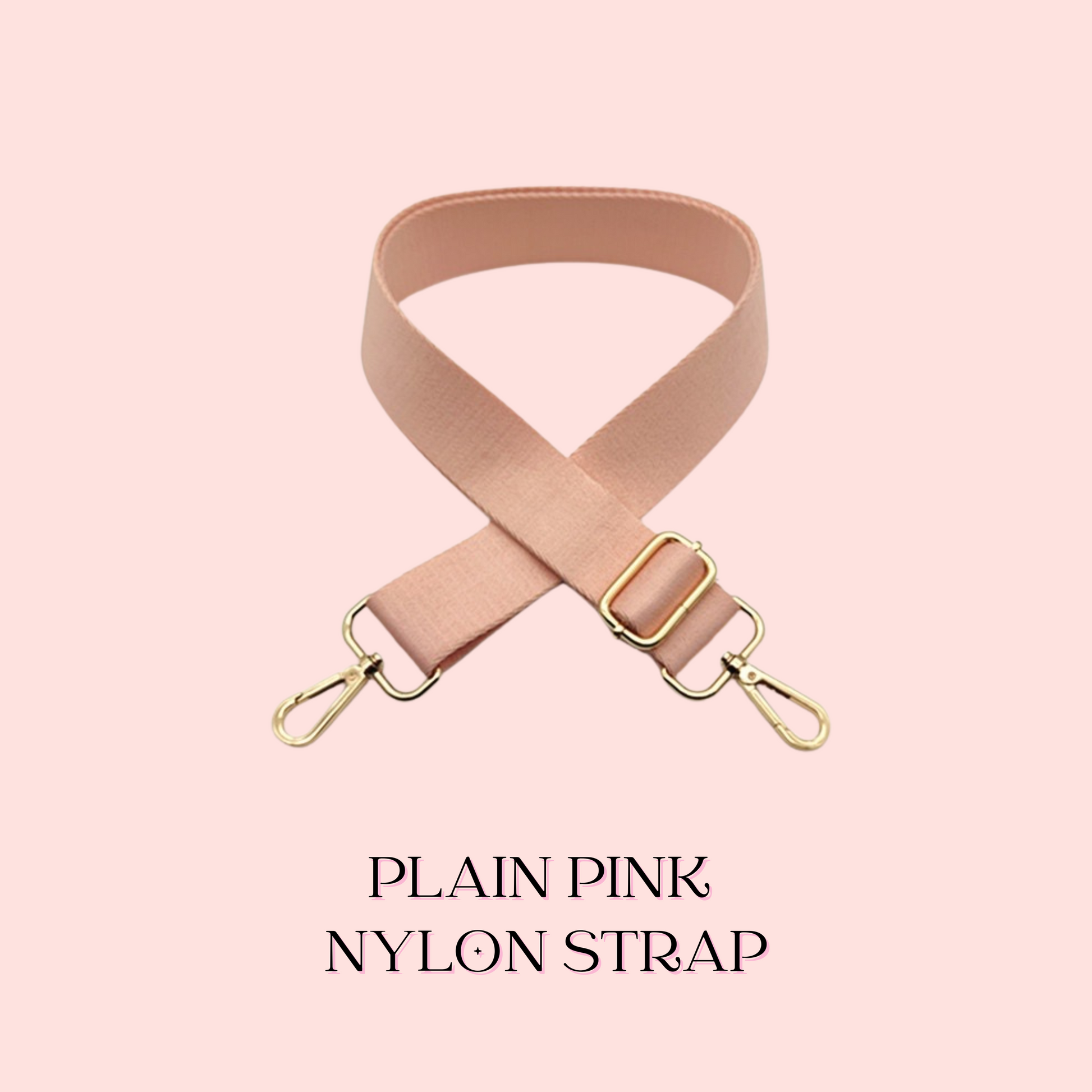 Plain Pink Nylon with gold hardware. Matte finish. Adjustable length of 80-130 cm. Ring included. (BAG NOT INCLUDED)