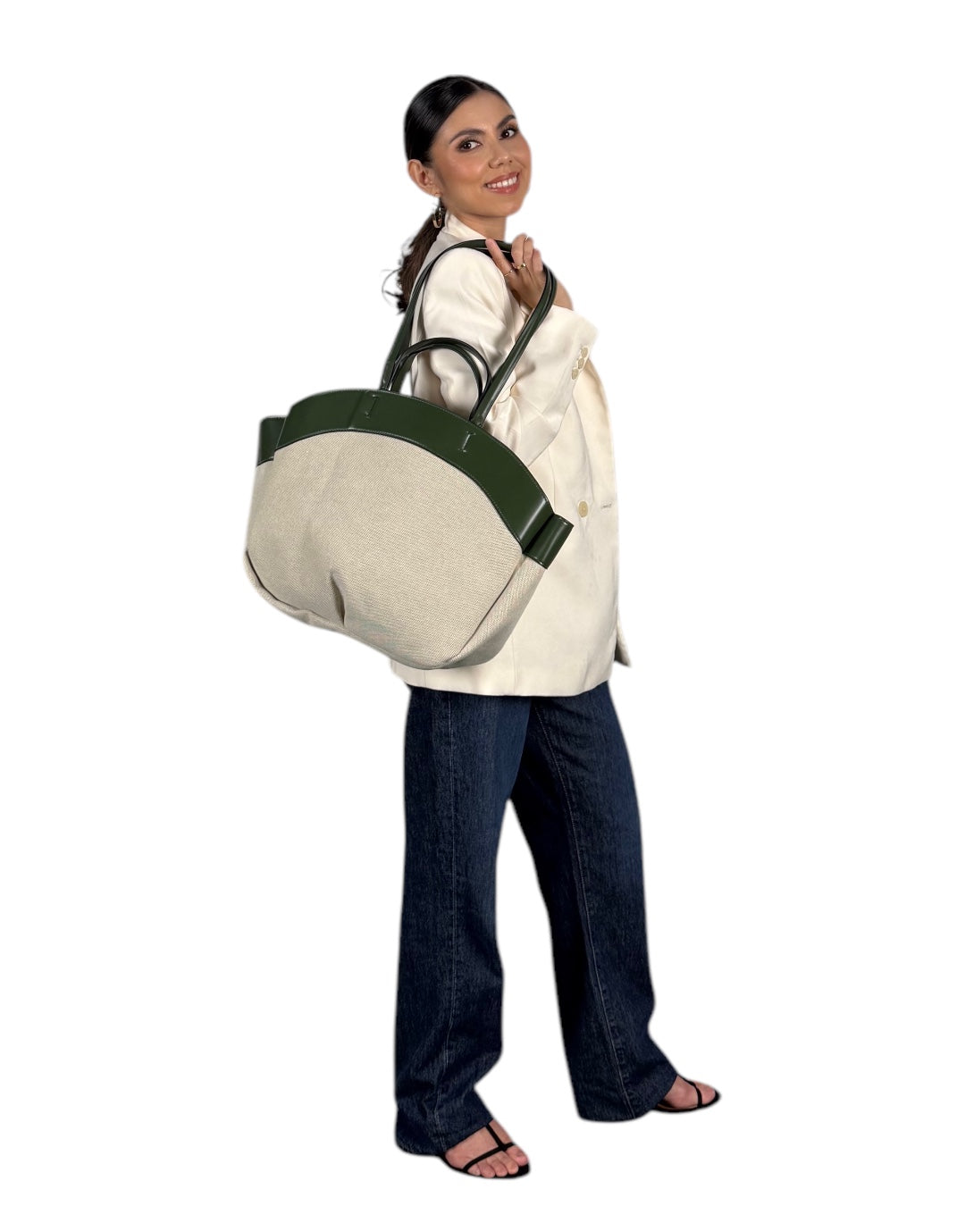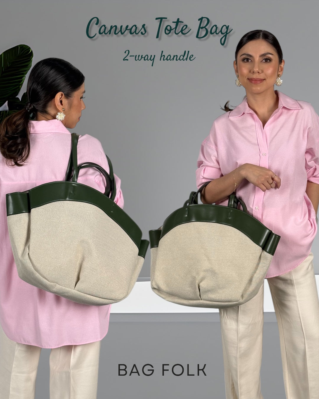 Canvas tote is a classy, spacious and easy to use bag. It has a 2-way handle and has both leather and canvas material.