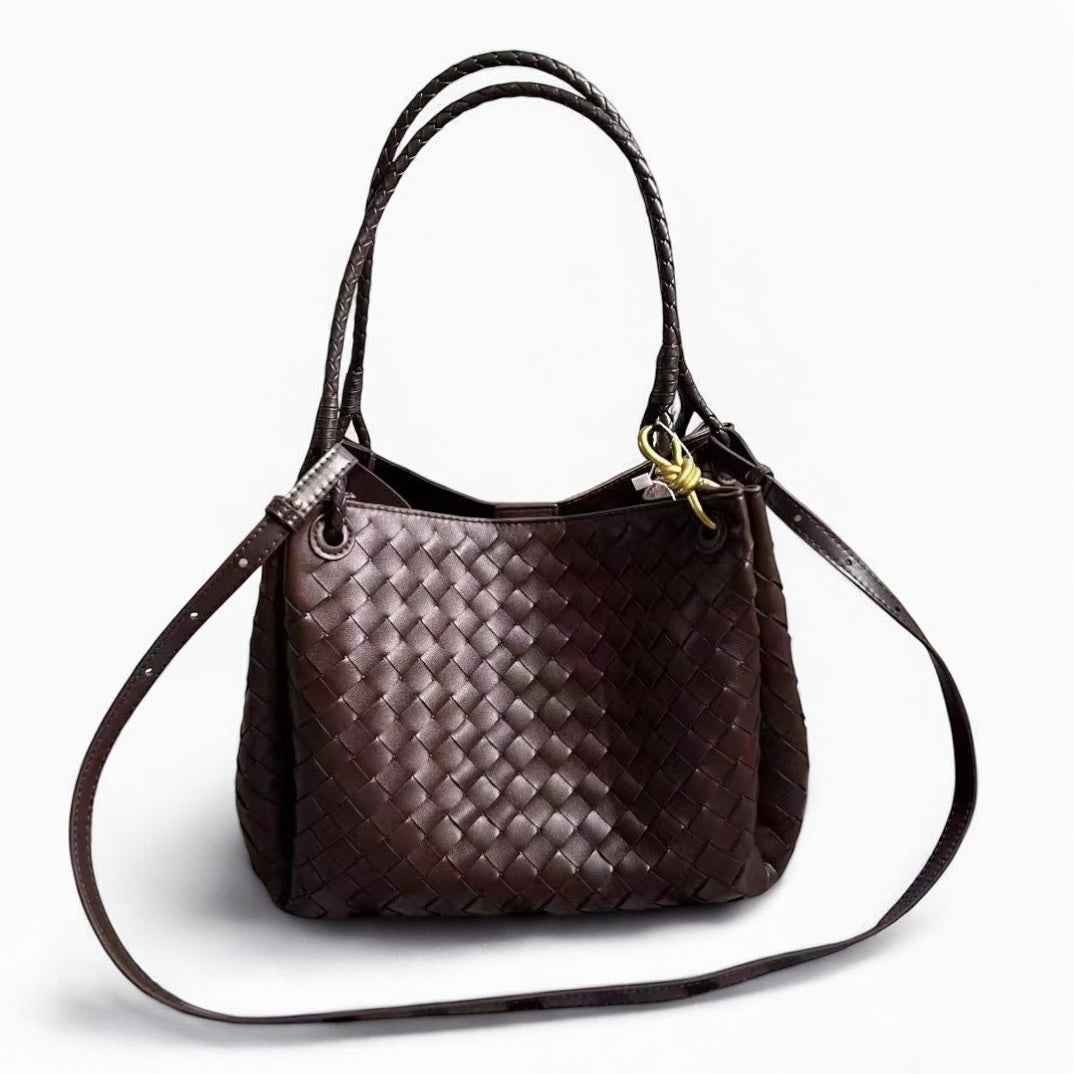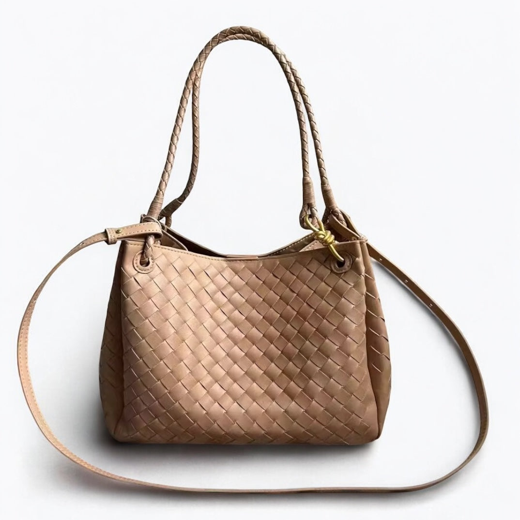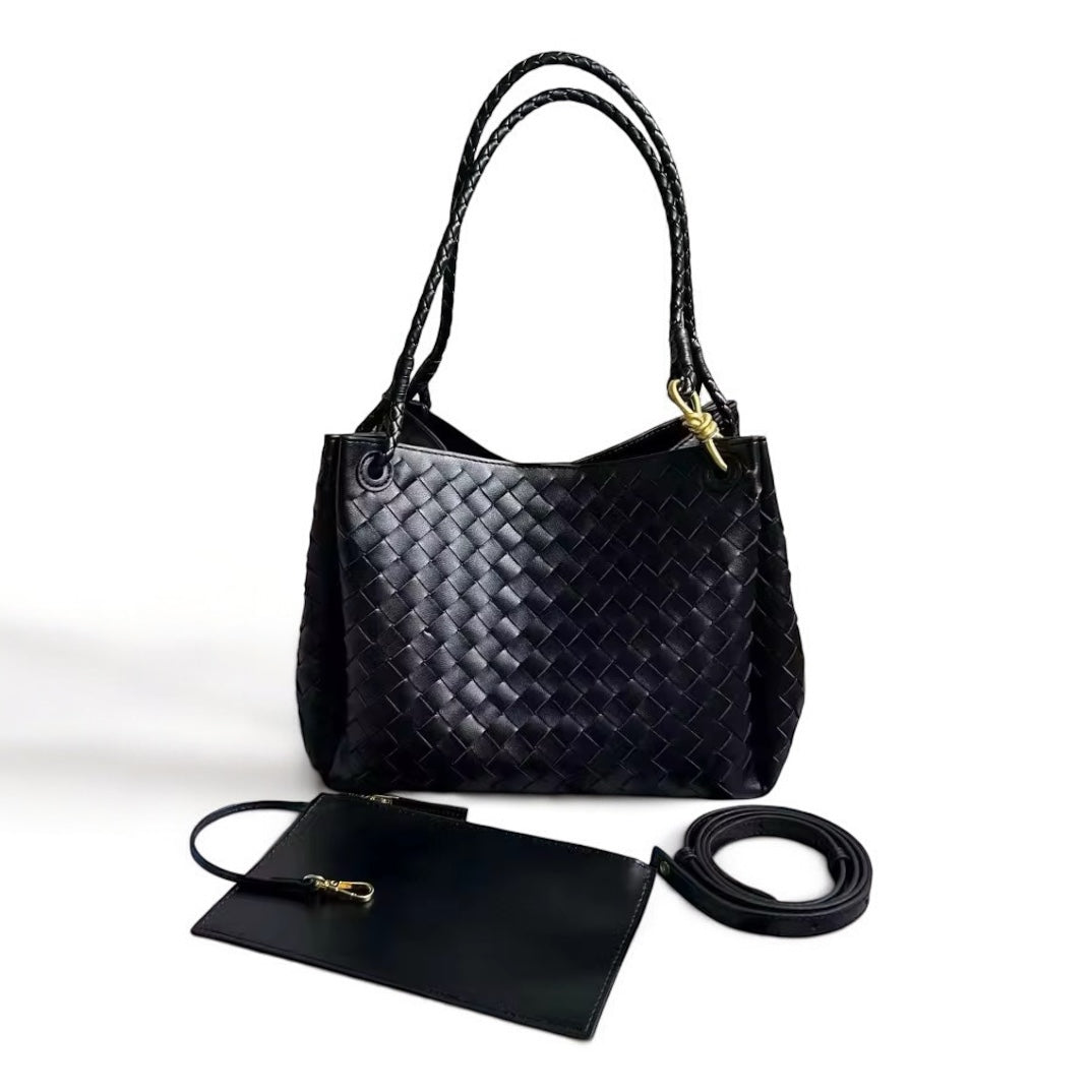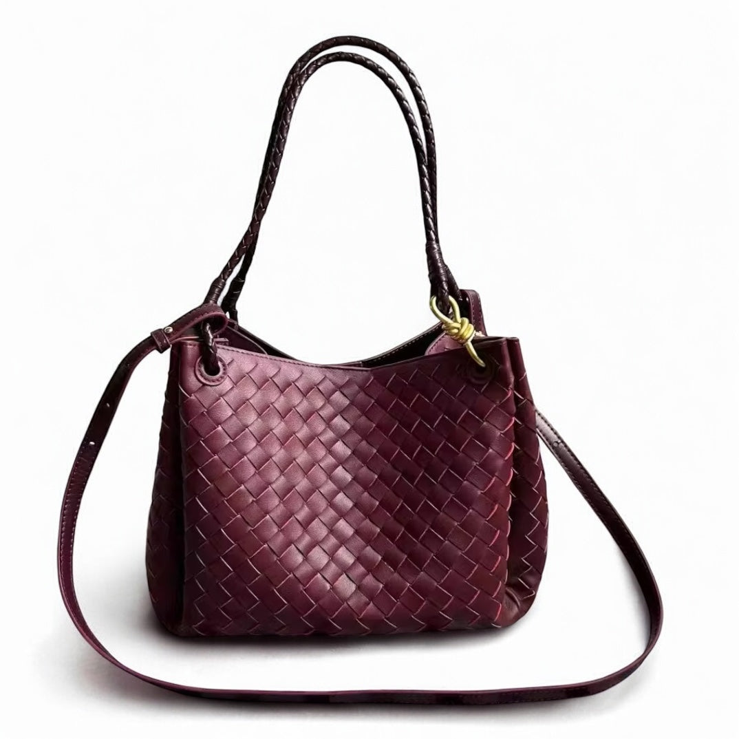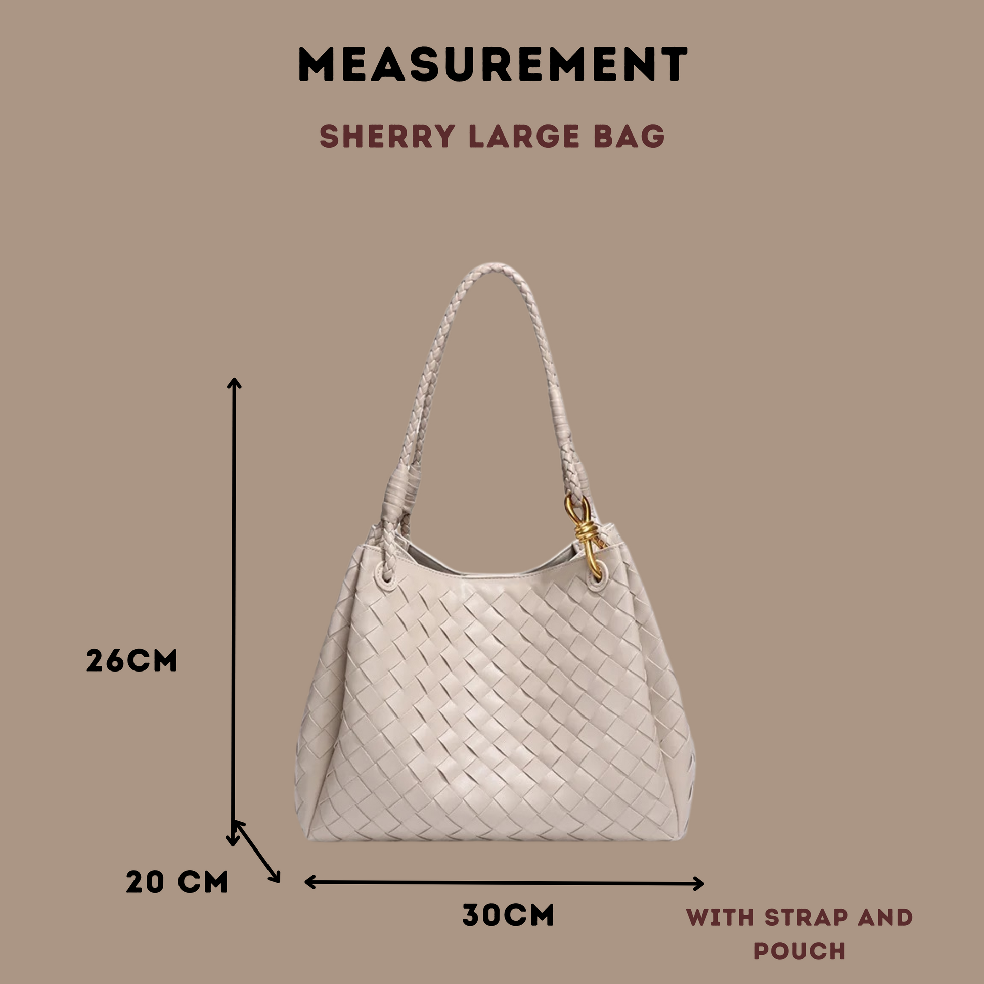 Ellie Braided Large Bag is made of genuine cowhide leather. It comes with a pouch and an adjustable strap.