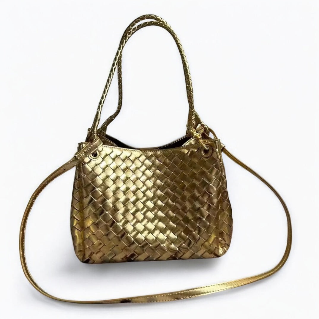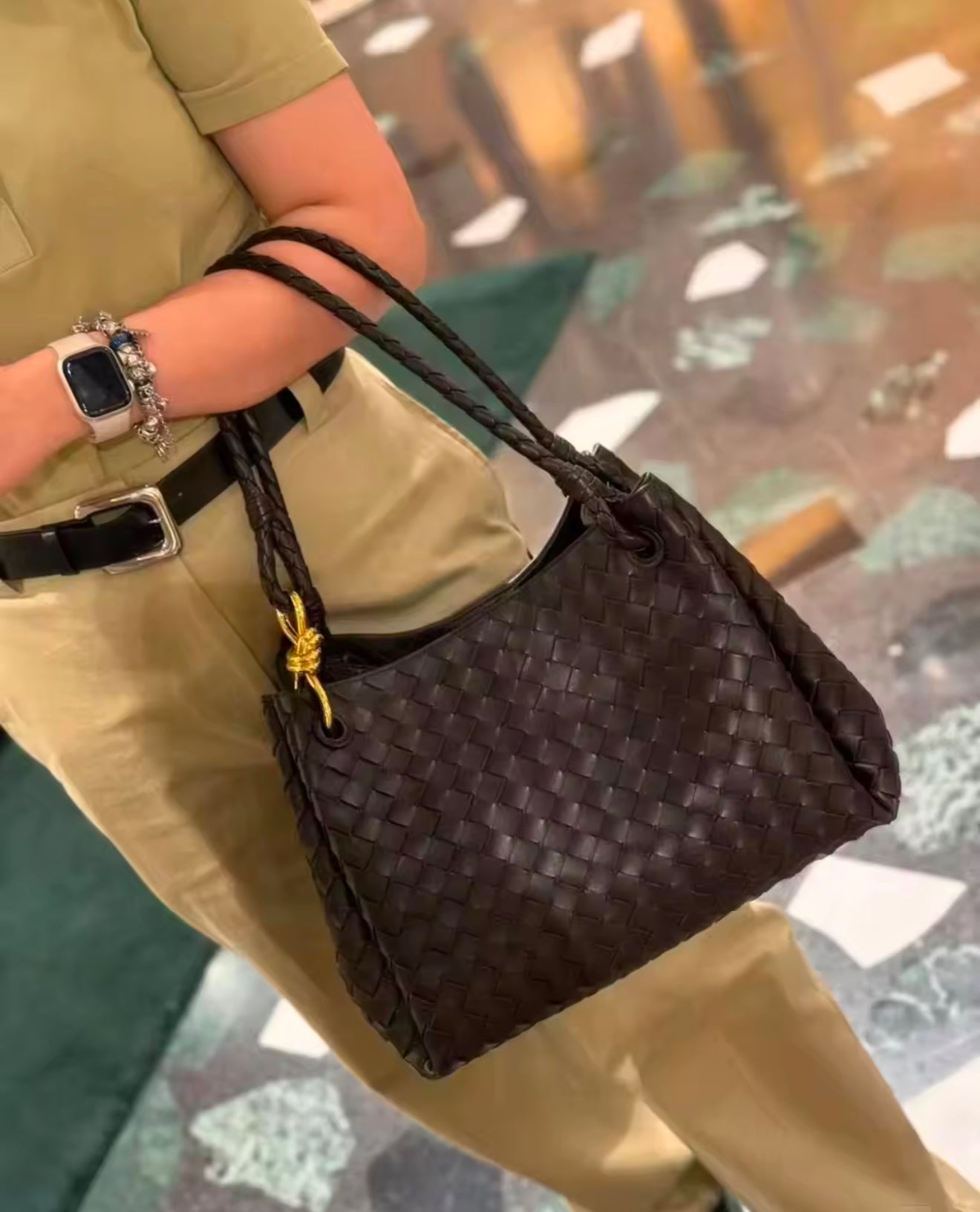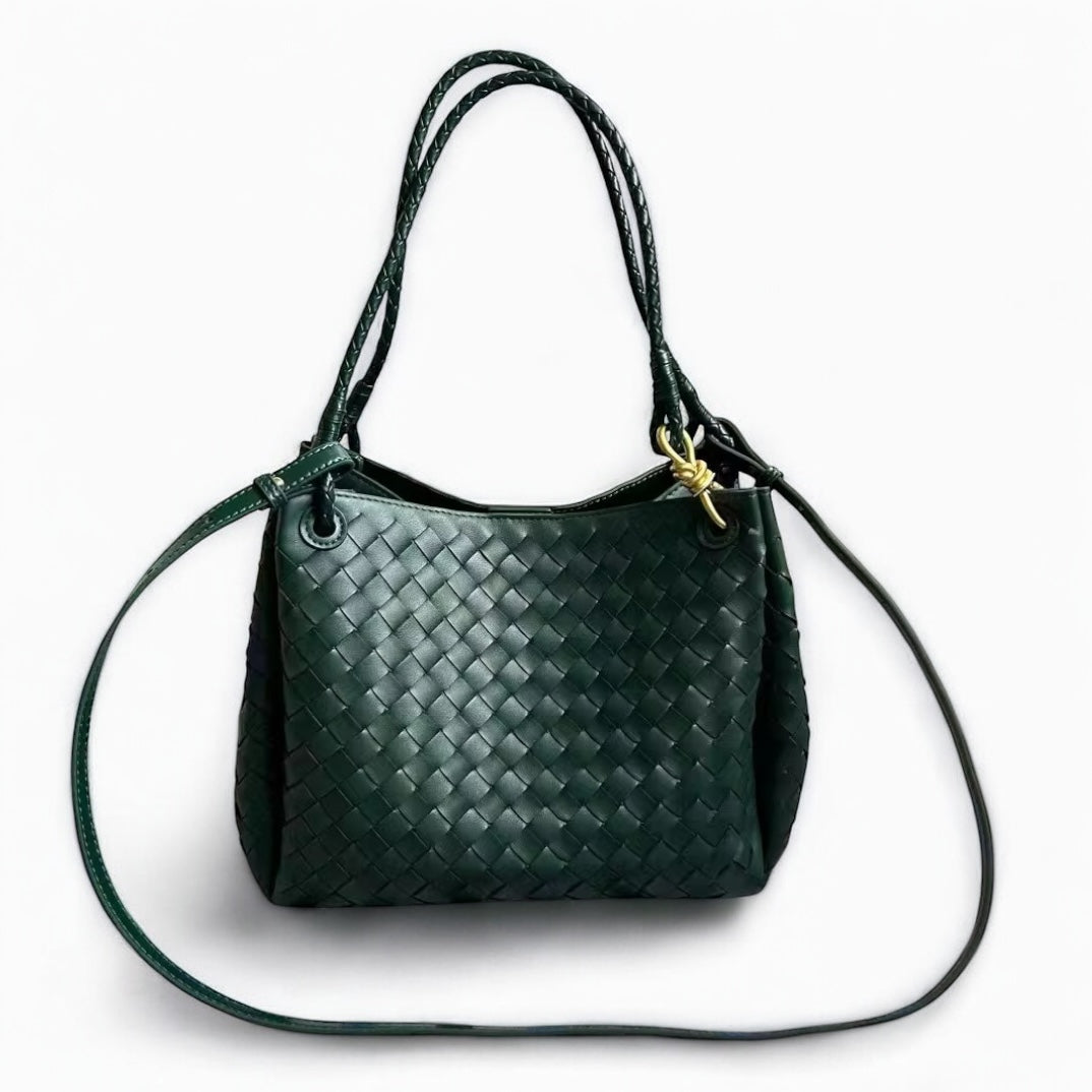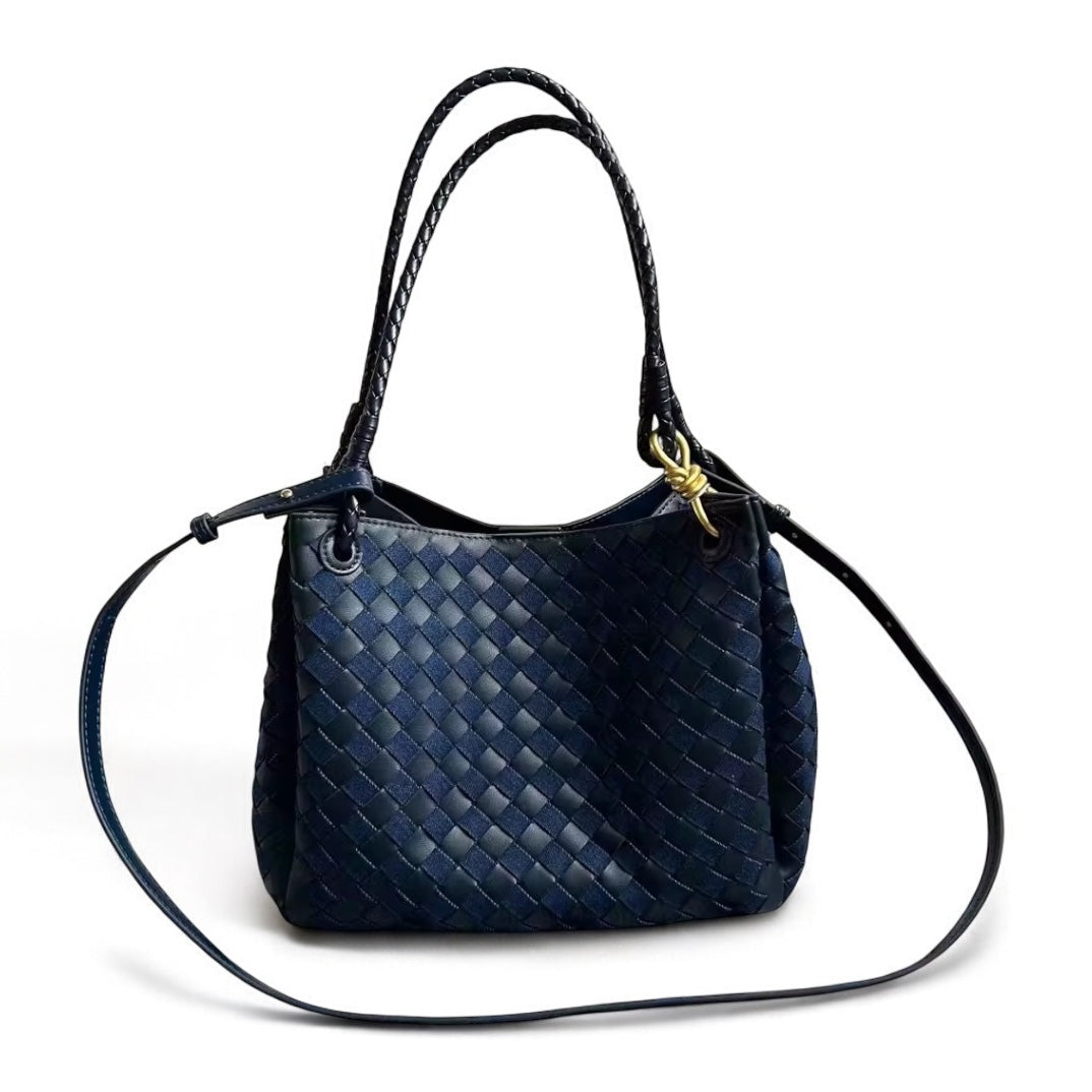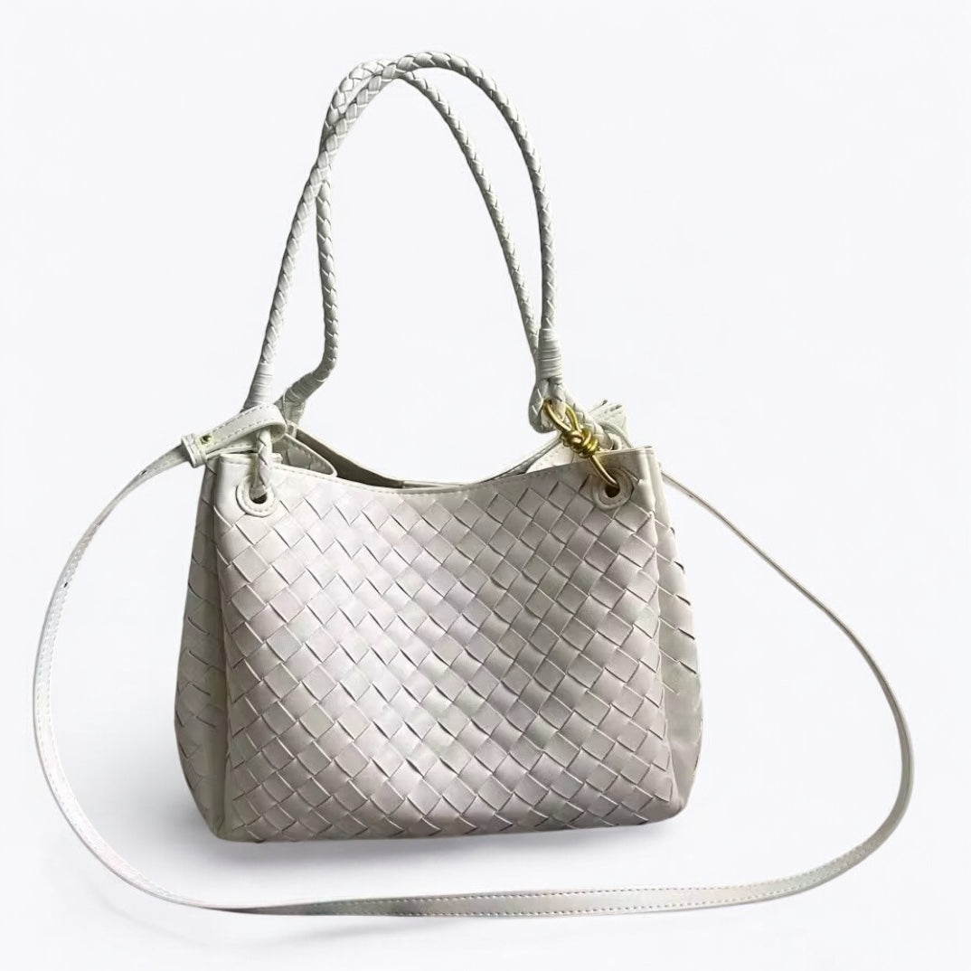 Ellie Braided Large Bag is made of genuine cowhide leather. It comes with a pouch and an adjustable strap.